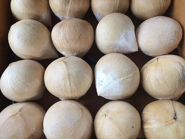 ○純(chún)種泰國香椰號(hào)稱小香椰子,個頭明顯偏小,約為海南本地椰子的一半到三分(fèn)之二大小。